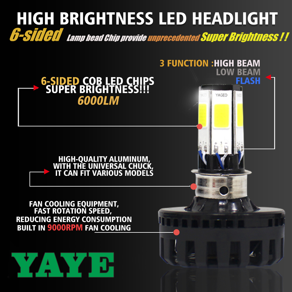 Гарантия: 12 месяцев Название продукта: 6 Боковые лампы шарики Чип мотоциклет вентилятор охлаждения головного ушка
